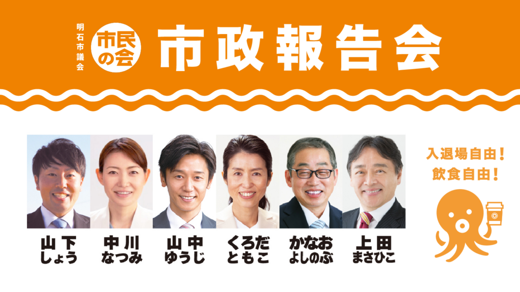 明石市議会「市民の会」による市政報告会です。今回のテーマは、①令和6年度決算審査、②かねてよりその必要性を訴えていた「こども夢応援プロジェクト」補正予算、③10月に会派全員で行った国会要望について。私たちが会派結成時から大事にしている『市民目線』で、いまの市政についてわかりやすくお伝えします。飲食&入退場も自由です。子育てやお仕事など、会場まで足を運ぶのが難しい方々のためにXでのオンライン配信も予定しています。