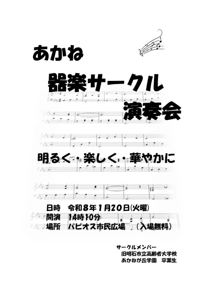 1/20(火)あかね器楽サークル演奏会:日頃の練習風景を見よう!!!