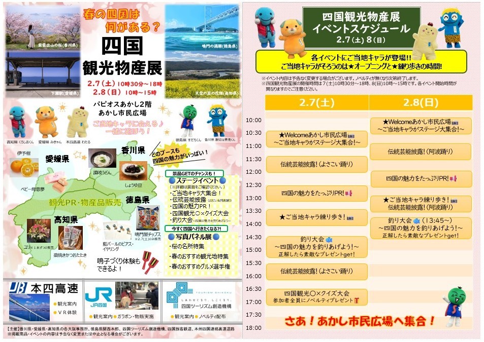 2/7(土)・8(日)に、あかし市民広場にて四国観光物産展を開催します。
