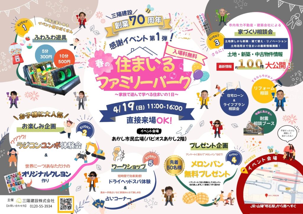 4/19(日)三陽建設創業70周年感謝イベント第1弾!住まいるファミリーパーク🎉
