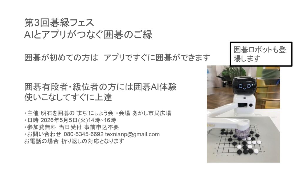 「明石を囲碁の’まち’にしよう会」囲碁がAIと囲碁アプリの